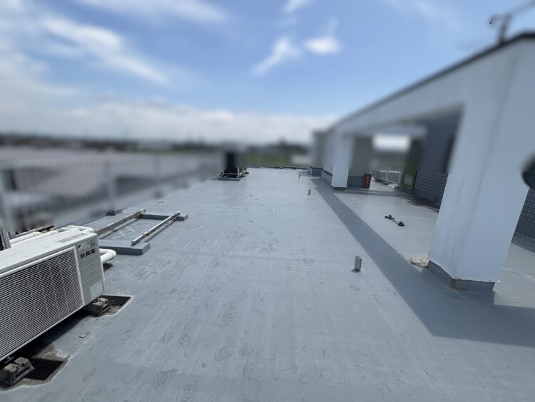 大阪府高槻市法人企業K様社屋 工事内容:屋上防水工事 塩ビシート防水、ウレタンの膜防水 複合工法 2025年9月完工